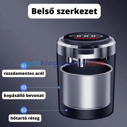 Ez a kiváló kialakítású, sportos kék hamutartó diszkrét LED világítással rendelkezik, amely megkönnyíti a használatot sötétben is. A kompakt méret praktikus tárolási lehetőséget biztosít nemcsak a hamunak, hanem apró tárgyaknak, például érméknek, kulcsoknak vagy csomagolásoknak is.